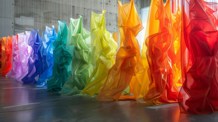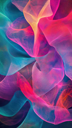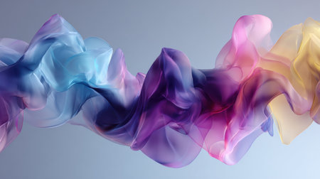 Soft, colorful fabric waves undulate gracefully through light, creating an ethereal and abstract visual experience that evokes tranquility and creativity.