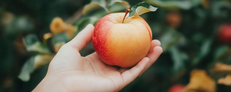 Fresh tasty bright red apple in garden, good for vegan food, advertisement, vitamins for immune system
