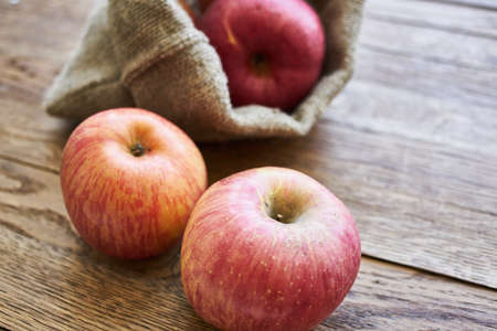 Apple on wooden background, Fruit or healthy fruit on wooden background.