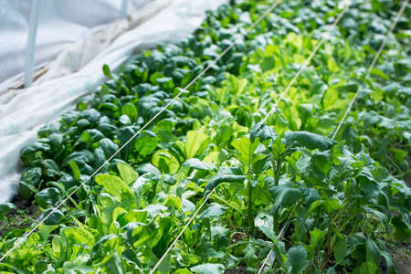 growth fresh vegetable salad garden at organic farm. Argiculture concept.