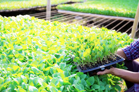 farmer cultivate healthy nutrition organic salad vegetables in hydroponic agribusiness farm.