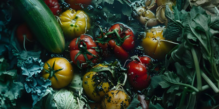 Illustrative photo of food waste: rotten vegetables in the trash. Concept Food Waste, Rotten Vegetables, Trash, Environment, Sustainability