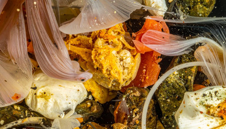 Discarded and spoiled food on a rubbish heap