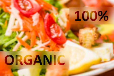 100% Organic Meal concept with colored and various food background