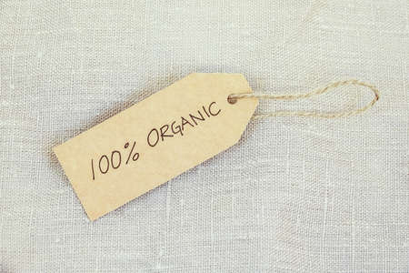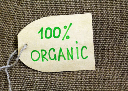Organic label on the natural burlap background