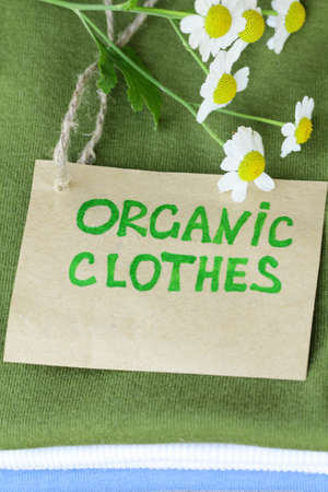 stack of colorful clothing with organic label