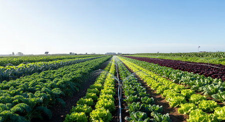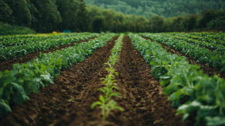 Rows of neatly planted vegetables stretching toward the horizon. Ample space for your message