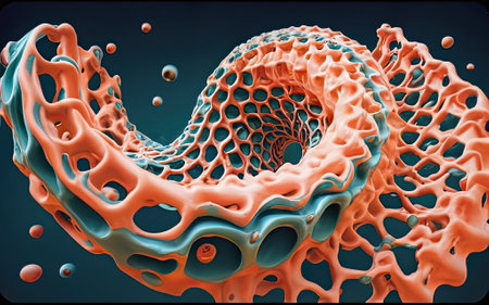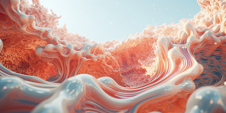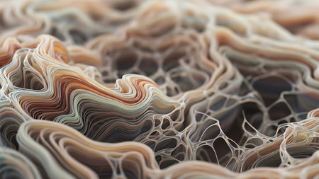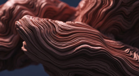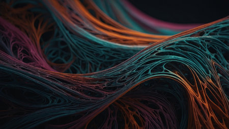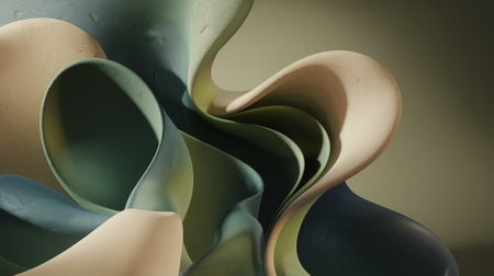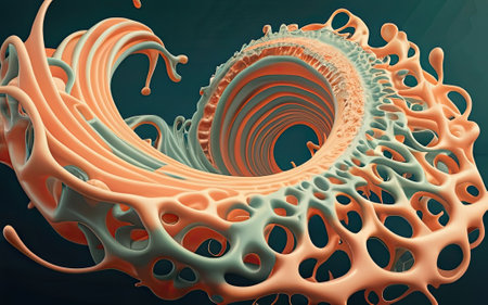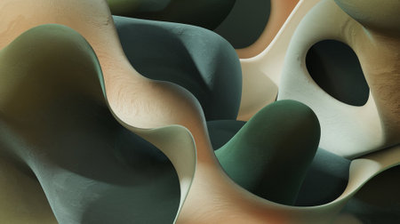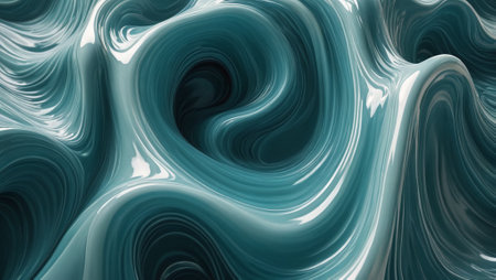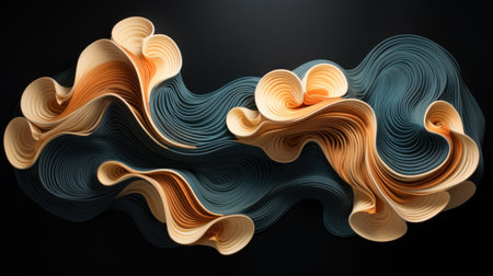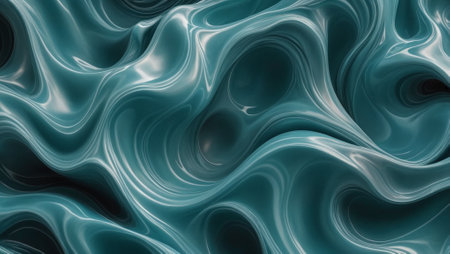 Dark turquoise and beige palette merges with futuristic waves and organic layers, Ai Generated.