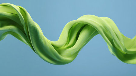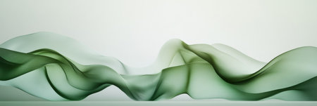 Delicate green waves of fabric flow gracefully, evoking a sense of calm in a minimalist interior, perfect for relaxation and reflection.
