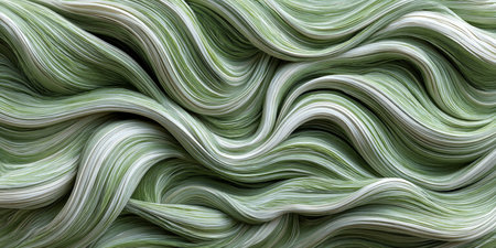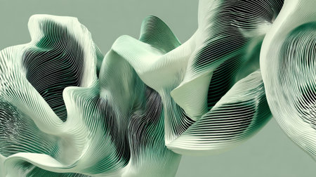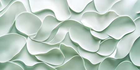 This abstract image features layered paper waves in gentle green and white tones, creating a dynamic texture that enhances modern design projects or backgrounds.