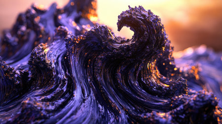 A mesmerizing display of flowing waves in shades of purple and blue, creating a sense of calm and serenity with its smooth curves and gradient textures.