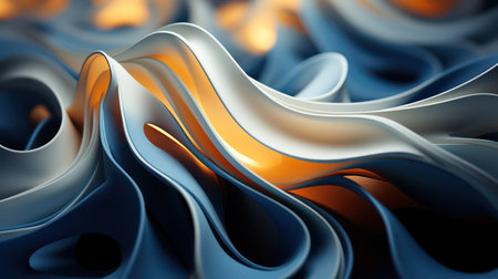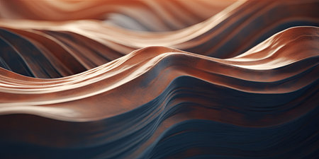 Golden rippled paper. Abstract Wave Artwork. A digital art piece featuring smooth, flowing waves in shades of blue and orange against a dark background. Ideal for web design, banners, or backgrounds.