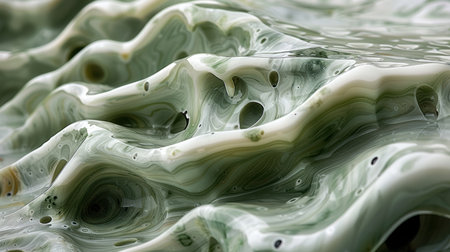 Vibrant green and white swirls create a dynamic abstract pattern against a light green background, showcasing fluidity and movement