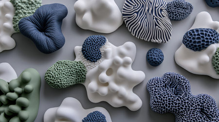 Intricate shapes swirl together, showcasing creamy tones and a flowing design. The arrangement creates a sense of movement and tranquility, inviting contemplation and appreciation.