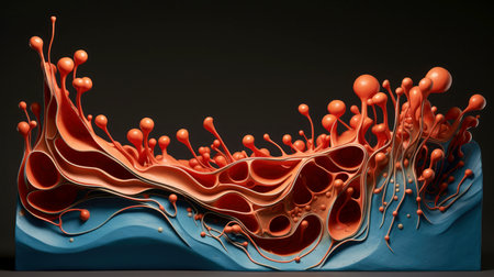 3D illustration mockup of the human organ systems, circulatory, digestive, red and white bloodcells wtih blurred backgroun. Medical education concept, Generative AI illustration