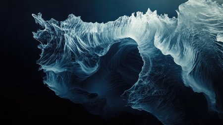 An impressive 3D rendering showcases a dynamic wave, complete with numerous bubbles emerging from its crest, creating a captivating visual effect.