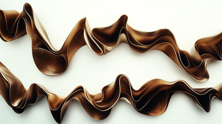 An abstract composition featuring undulating curves in rich brown and cream hues, evoking movement and elegance.