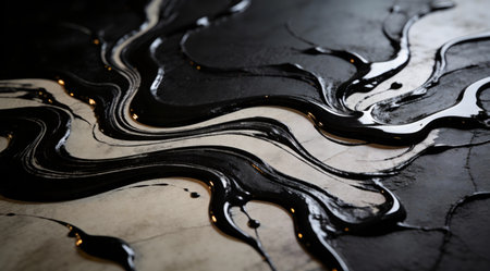 A creative digital illustration depicting Professional black matte paint drip wallpaper, viscous fluid trails, organic abstract flow, industrial creative mood, even soft illumination. This AI-generated artwork features unique visual elements suitable for various commercial and editorial applications. AI-generated illustration.