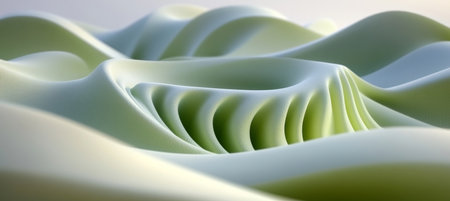 3D abstract wave texture with smooth flowing lines and soft lighting. Modern minimal background design for presentations, websites, and digital art projects.