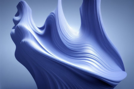Abstract Blue Fluid Wave on Textured White Background with Smooth Curves and Elegant Movement Representing Calmness and Serenity in Contemporary Art