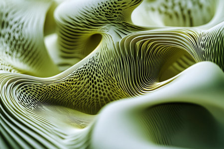 Stunning 3D of a wavy surface with intricate patterns. Detailed close-up of a harmonious white texture with gentle curves and ripples. AI Generative