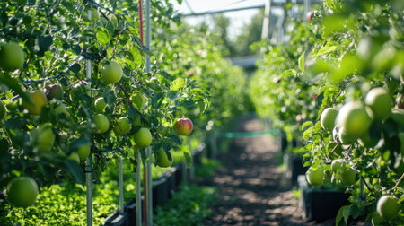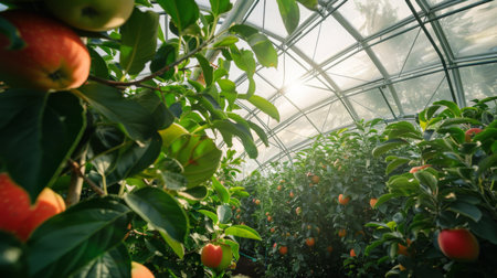 Apples Growing in a Greenhouse During Daylight Hours