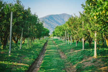 Tangerine garden with fruits