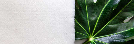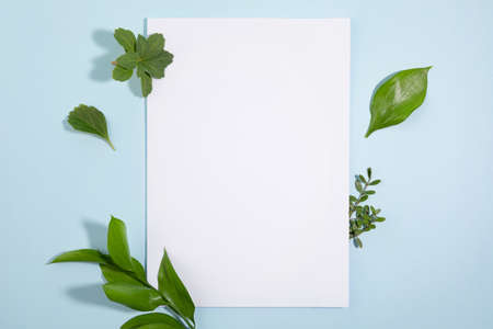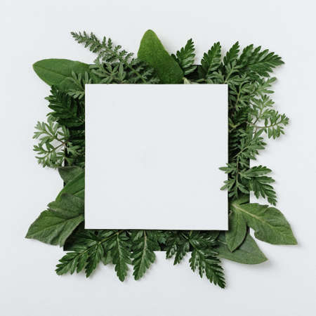 Creative mockup with green leaves with a sheet of paper for text - Invitation or banner for message -Trendy social mockup or wallpaper - Frame with greenery