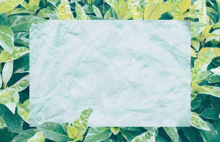 Background of green leaves with a paper