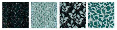 Abstract pattern set with organic shapes in pastel colors blue, green. Organic background with spots, stripes. Collage seamless pattern with nature texture. Modern textile, wrapping paper, wall art.