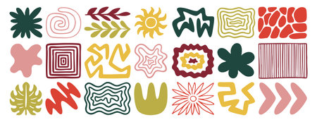 Set of abstract retro organic shapes vector. Collection of contemporary figure, cloud, flower, sparkle, mountain in funky groovy style. Cute hippie design element perfect for.