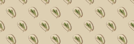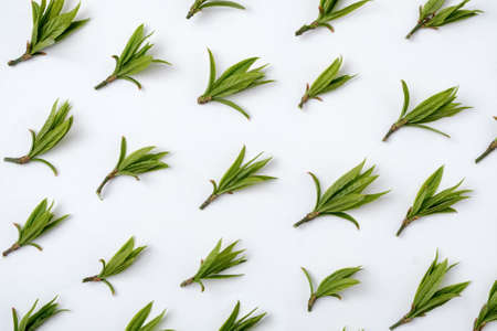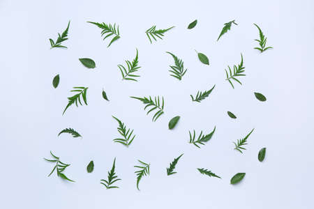 Pattern with green leaves on a white background - Minimal trendy natural concept