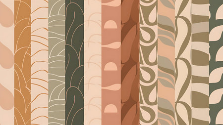 Leaves showing minimalist line pattern with abstract organic shapes and botanical on a beige background keywords: minimalist, line pattern,...