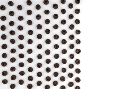 black cereal rings pattern in form of frame with empty space for text, delicious breakfast concept