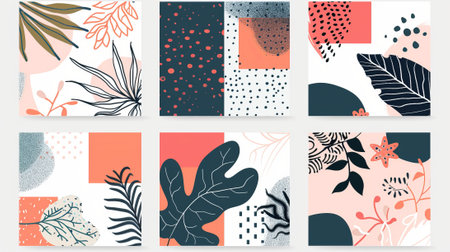The abstract square art templates feature floral and geometric elements. Suitable for posting on social media, developing mobile apps, designing banners, and making web/internet advertisements.