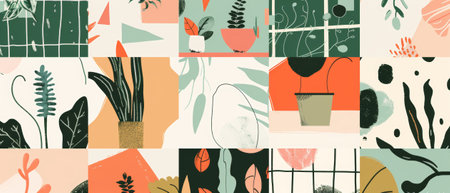 Abstract colorful patchwork background. Hand drawn squares with various doodle organic shapes. Vector illustration for modern poster, contemporary print or trendy pattern template