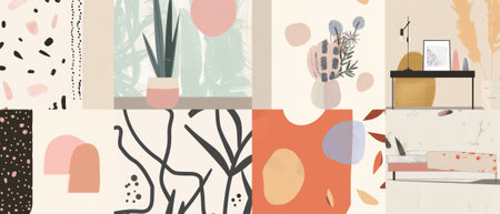 Abstract backgrounds with hand-drawn shapes and patterns Pastel colors create a soft and calming effect. Vectors make it easy to customize and resize. Doodle style illustrations add fun