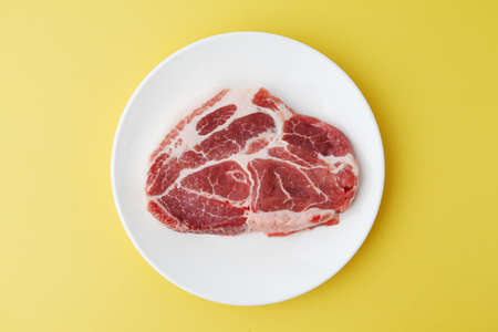 raw pork meat isolated on yellow background