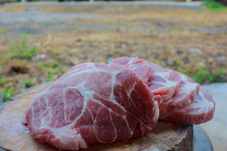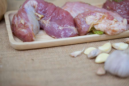 freshness pork slice on wooden plate for cooking ingredient