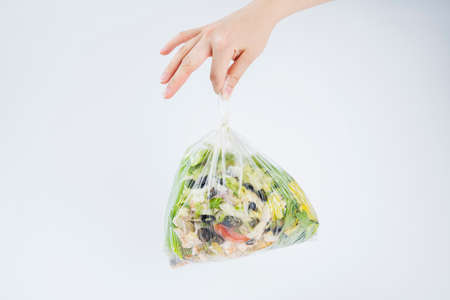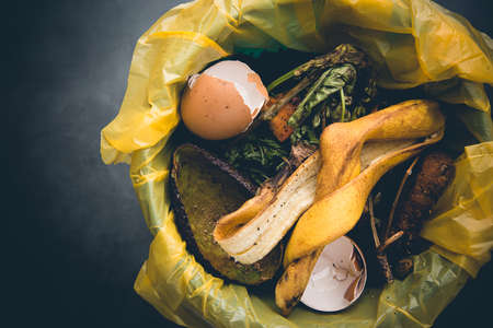 Vegetable and fruit waste from cooking, collected in a garbage bag for recycling. Compost. The concept of zero waste.