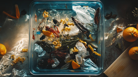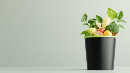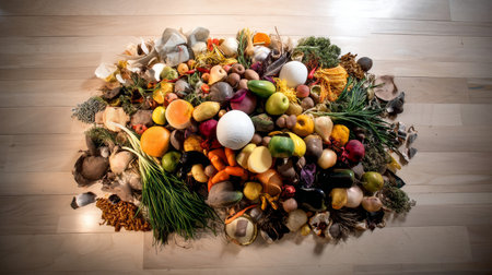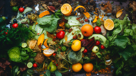 a bin with a variety of fruits, vegetables, and other compostable materials, created with generative ai