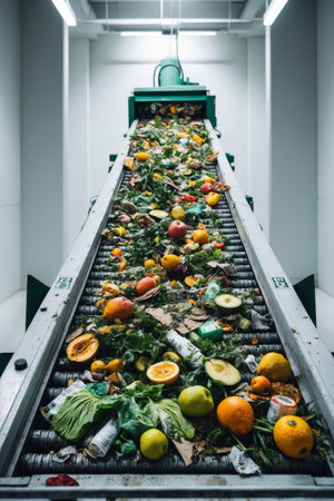 AI Generated. Food Waste On Conveyor Belt At Recycling Plant