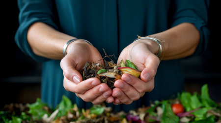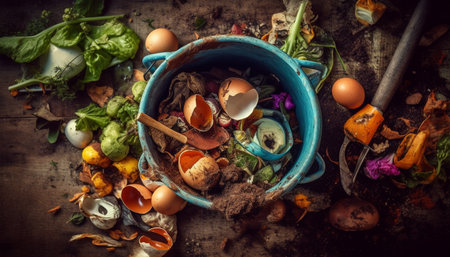 Waste recycling. Fruit and vegetable waste is converted into organic soil fertilizer. ai generative
