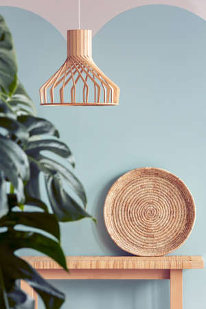 flower & green plant leaves in wicker basket decorating on terrace balcony