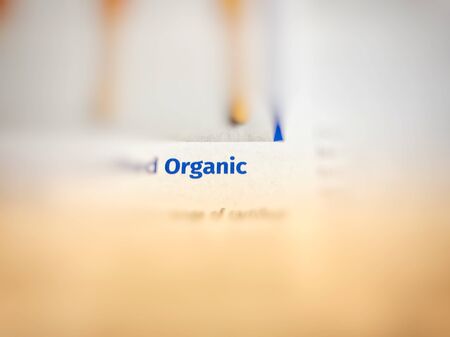 A sign reading Organic surrounded by lush green leaves, emphasizing natural and eco-friendly products. High quality photo