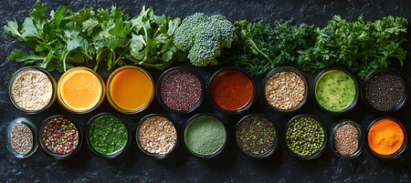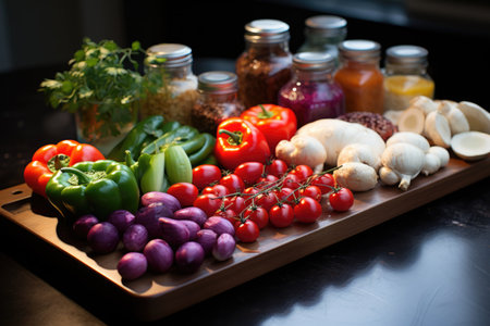 vegetables, spices, and other ingredients arranged in a beautiful and artistic way, created with generative ai