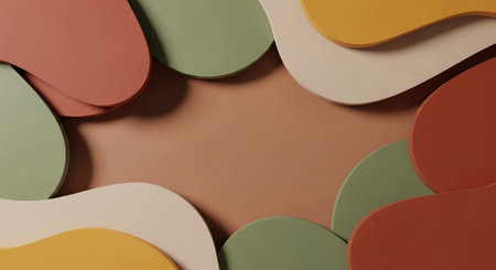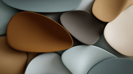 A captivating abstract arrangement of smooth shapes in earthy tones and soft pastel colors, perfect for modern interior design and artistic inspiration.