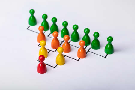 Wooden Pawns Forming Hierarchical Structure Over White Background