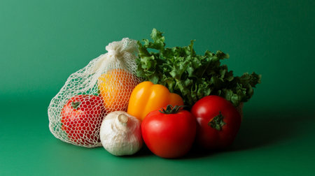 A collection of fresh vegetables in a rustic burlap bag promoting sustainability. This image emphasizes healthy eating and eco-friendly practices, perfect for food-related themes.