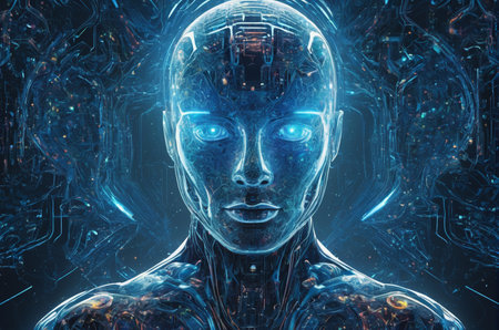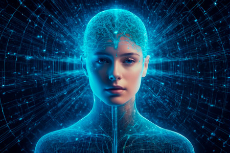 Futuristic Digital Human with Neural Network Visualization. Generative AI.